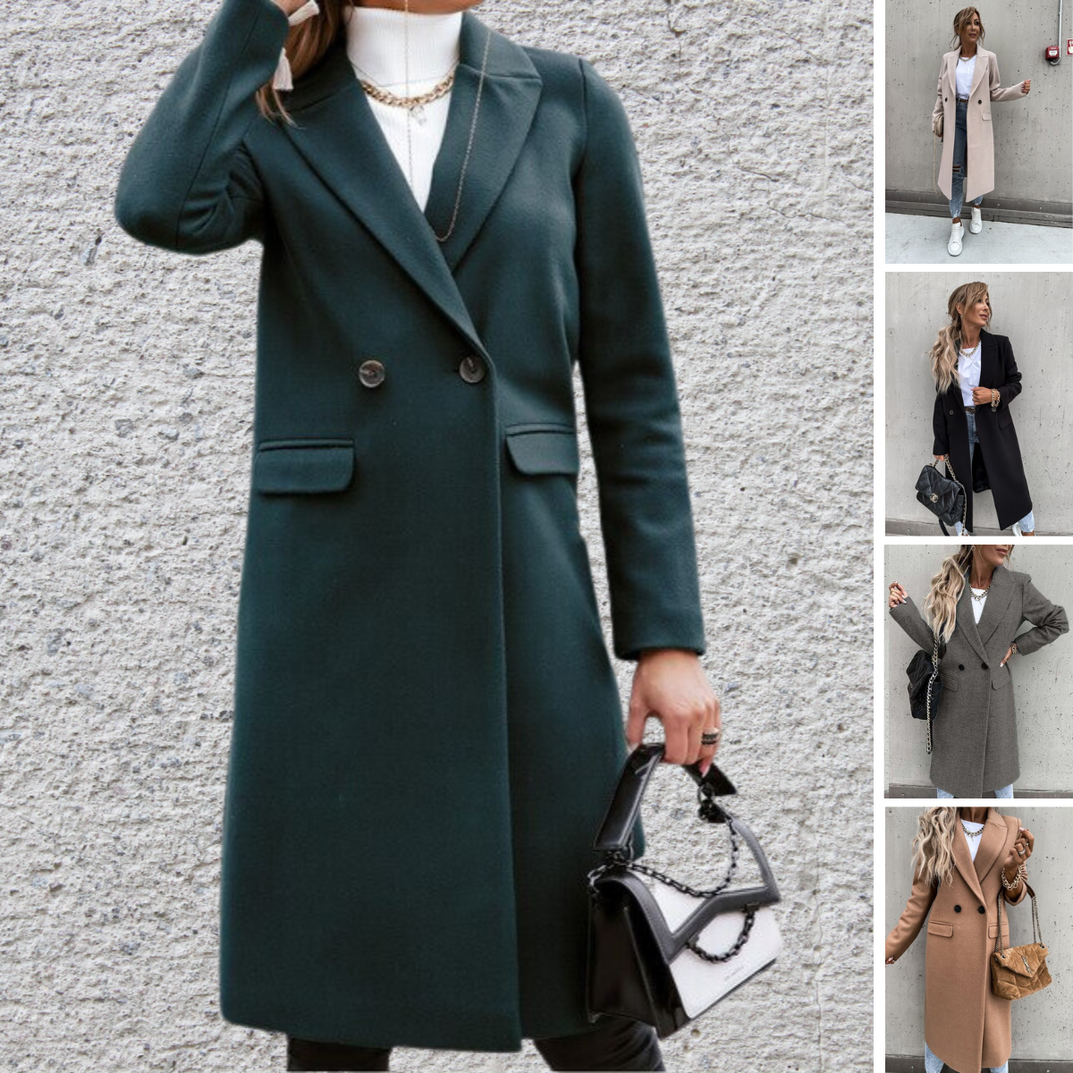 Experience timeless style with 'Women's Wool Coat - Long Elegance - Tailored Double-Breasted Design with Buttons' from Nordic Flair. This elegant, long wool-blend coat is tailored and features a classic double-breasted design with buttons, perfect for chilly days. It is both stylish and functional, ensuring you a sophisticated look.