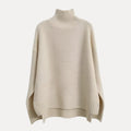 Isabella Wool Oversized Turtleneck Sweater | Ribbed Side Slit Sweater