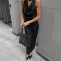 Satin Halterneck Draped Slim Evening Dress