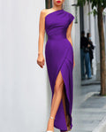 Asymmetric One-Shoulder Fitted Long Slit Evening Dress