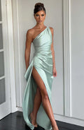 Women's Evening Dress - Elegant Satin - One-Shoulder - High Slit - Fitted Long Dress. Look forward to an unforgettable evening in this elegant satin evening dress. The beautiful one-shoulder detail, high slit, and fitted design highlight your curves in the most beautiful way. Perfect for the next big event!