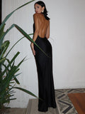Women's Evening Dress - Halterneck - Deep V-Neck - Floor-Length - Elegant and Tailored from Nordic Flair is the ultimate dress for festive occasions. With its beautiful halterneck, deep V-neck, and tailored design, it accentuates your best features and ensures an elegant expression. Perfect for those who want to stand out with style.