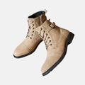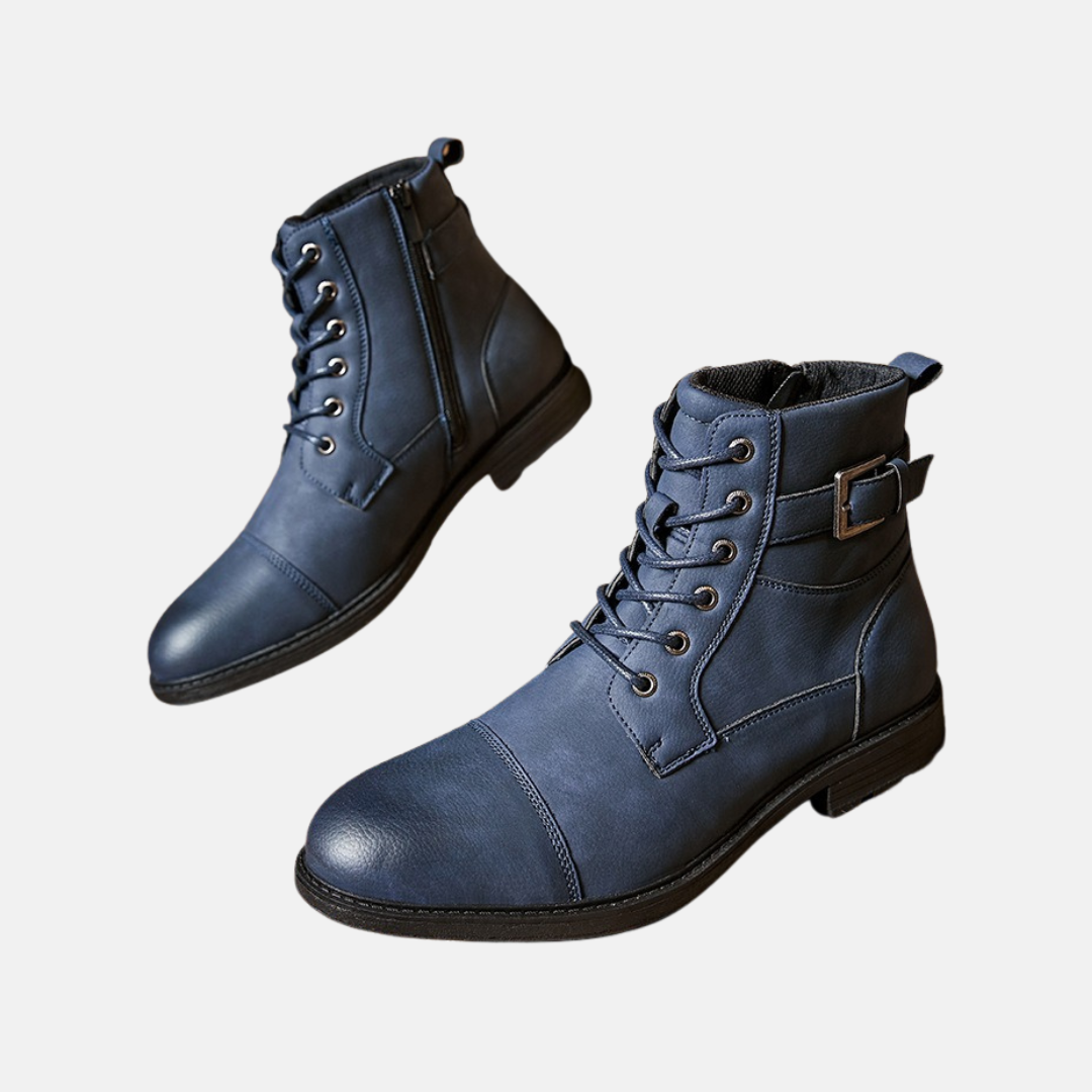 - Design: Ankle-height silhouette with a rounded cap toe and lace-up front.