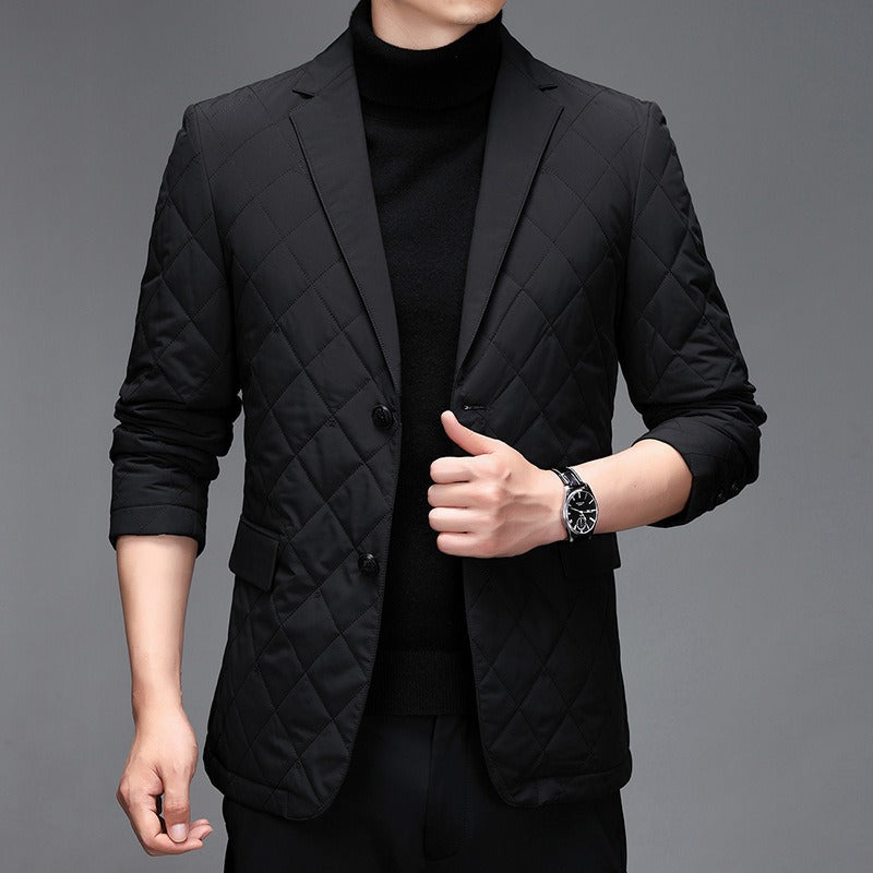 Elevate your smart casual wardrobe with our Men’s Blazer Jacket. Crafted from refined quilted fabric, this slim fit blazer with a notched lapel offers a sophisticated silhouette and versatile styling for the discerning gentleman.