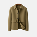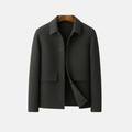 Elevate his wardrobe with our Men’s Blazer Jacket, crafted from a refined wool blend. Its tailored fit and classic turn-down collar offer a sophisticated silhouette, while the practical snap button closure ensures effortless style for any discerning gentleman.