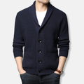 Elevate his smart casual wardrobe with our Men’s Cardigan Sweater. Crafted from a luxurious ribbed knit, this timeless piece features a distinguished shawl collar, classic button front, and practical patch pockets, offering both refined style and effortless versatility for the discerning gentleman.