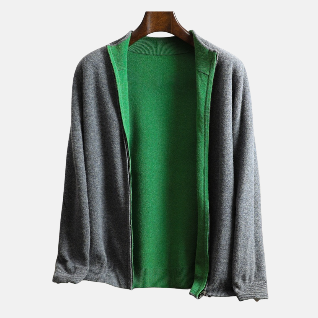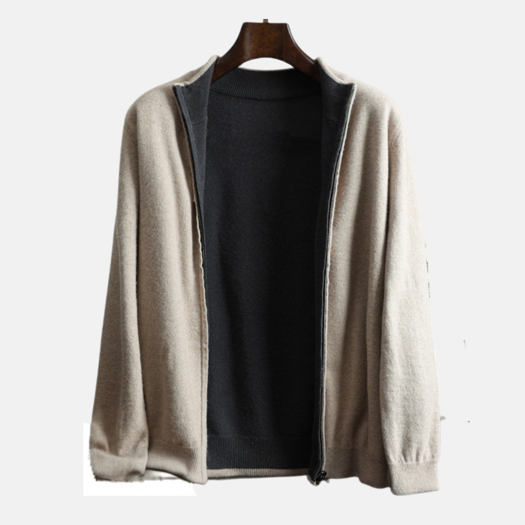 Elevate his wardrobe with the Men’s Cardigan – Wool Blend – Relaxed Fit – Band Collar – Full-Length Zipper. This sophisticated piece offers a timeless silhouette and versatile styling, perfect for the discerning gentleman seeking both comfort and refined elegance.