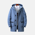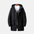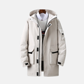 Embrace the colder months with our sophisticated Men’s Coat, crafted from durable woven fabric. This mid-thigh length coat features a practical hooded neckline and adjustable cuffs, offering a relaxed yet refined silhouette perfect for versatile styling and enduring comfort.