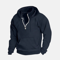Elevate his casual wardrobe with our Men’s Cotton Blend Quarter-Zip Hoodie, featuring a sophisticated layered collar. This relaxed-fit piece offers timeless style and effortless comfort, perfect for a refined yet relaxed aesthetic.
