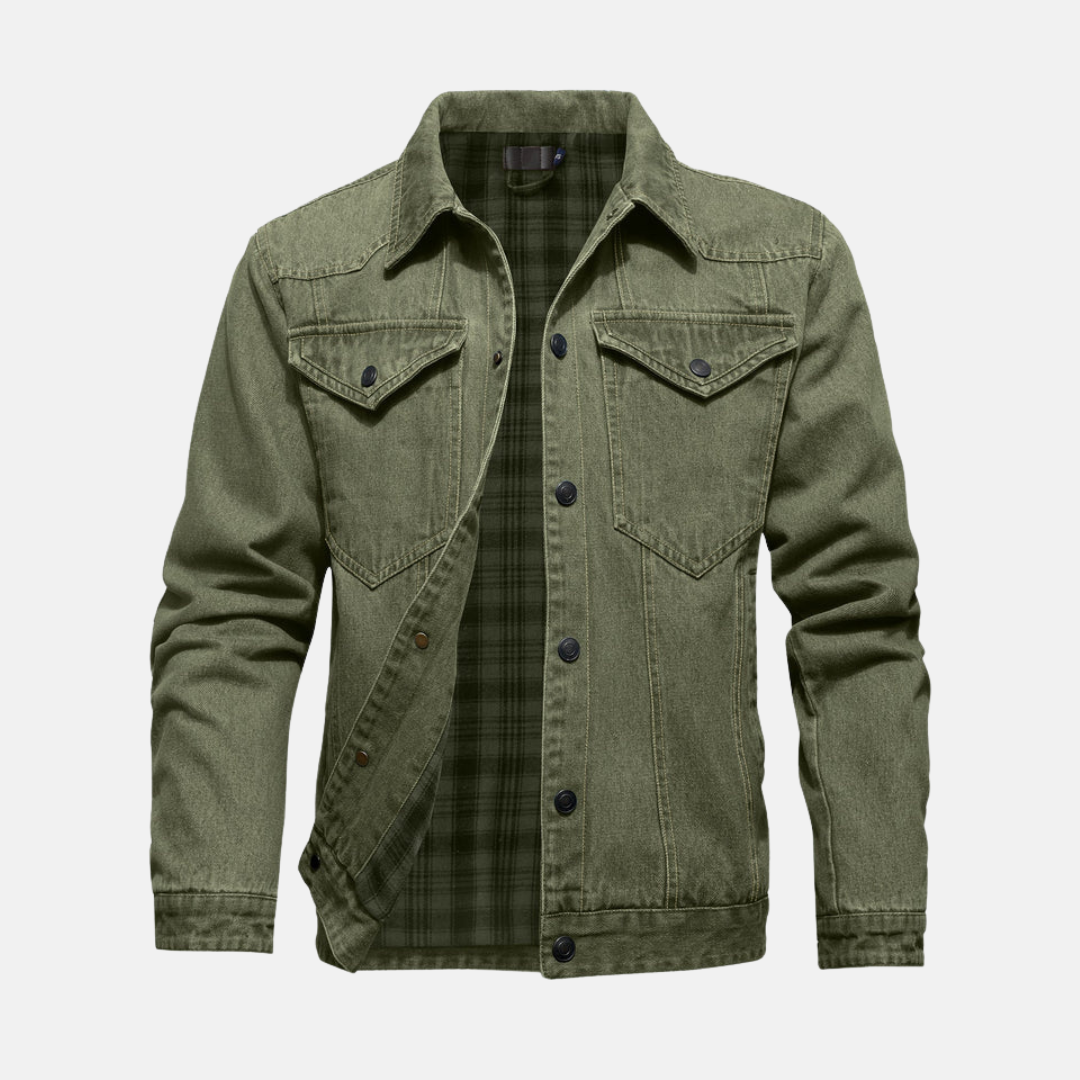 Elevate his casual wardrobe with our Men’s Denim Jacket. This relaxed fit, hip-length design features a classic button front and chest pockets, offering timeless style and versatile layering for the discerning gentleman.
