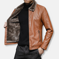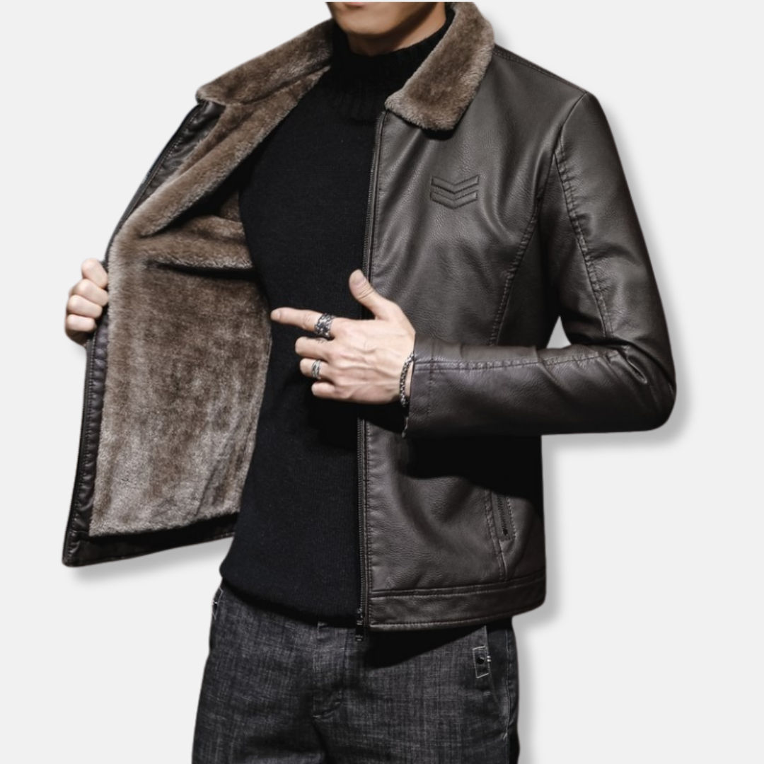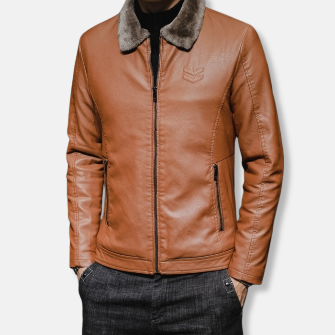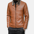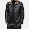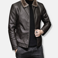 Elevate your wardrobe with this distinguished Men’s Faux Leather Jacket. Featuring a classic turn-down collar, full zip closure, and a flattering hip-length cut, it offers a timeless silhouette perfect for the discerning gentleman seeking both style and versatility.