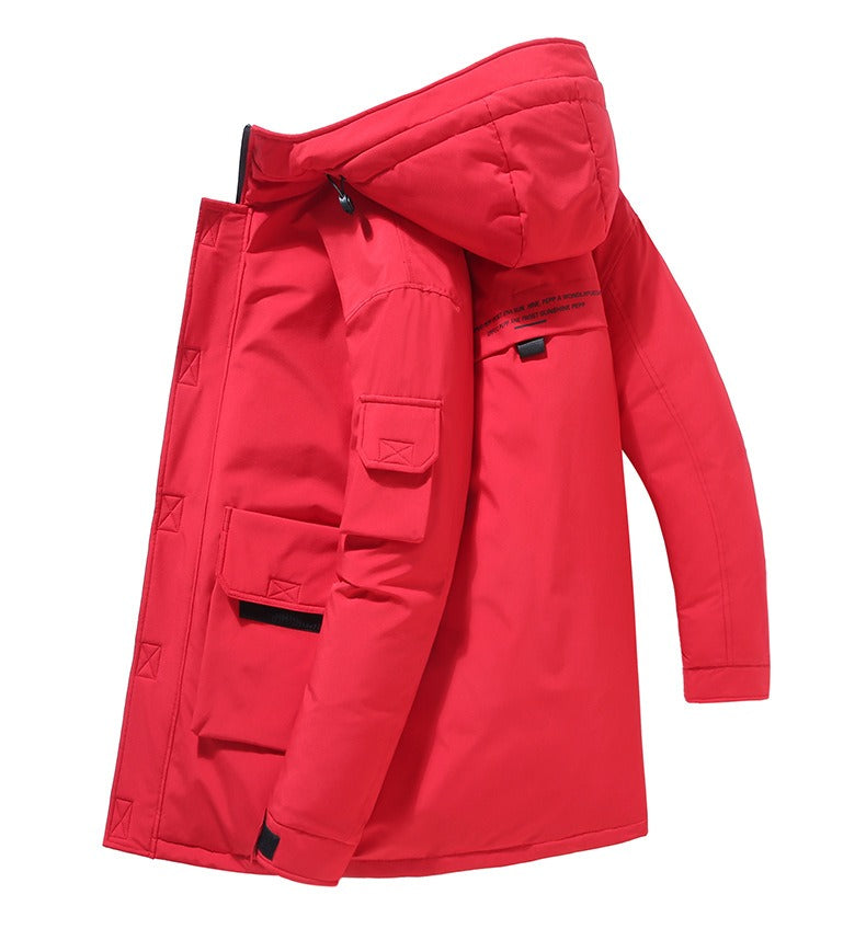 - Design: Regular fit, mid-length with a fixed, padded hood and practical patch pockets.