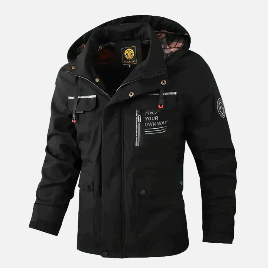 Elevate your casual wardrobe with our Men’s Jacket, a sophisticated hip-length design crafted from a durable woven blend. Featuring a distinguished stand collar with an integrated hood, this jacket offers both timeless style and practical versatility for the discerning gentleman.