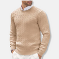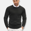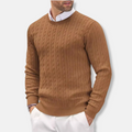 Men’s Knit Pullover Sweater – Slim Fit – Fine Knit – Cable Detail – Ribbed Hem & Cuffs by Nordisk-Flair. This stylish slim-fit knit features a timeless cable texture and comfortable ribbed details. The fine knit construction provides warmth and a refined look, perfect for any occasion.