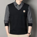 Plaid Sleeve Faux Layered Pullover Sweatshirt