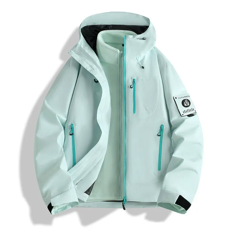 - Design: Modular, relaxed silhouette with an adjustable hood and full zipper closures.