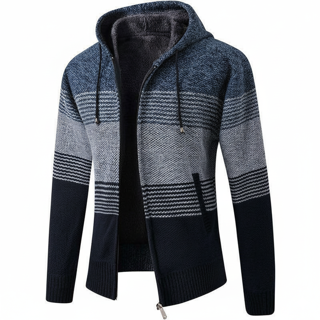 Nordisk-Flair presents the men’s knitted hoodie jacket blends warmth and casual style effortlessly. Featuring a modern striped pattern with a zip-up front, it’s a perfect go-to piece for layering. Ideal for everyday wear, keeping you cozy without compromising style.
