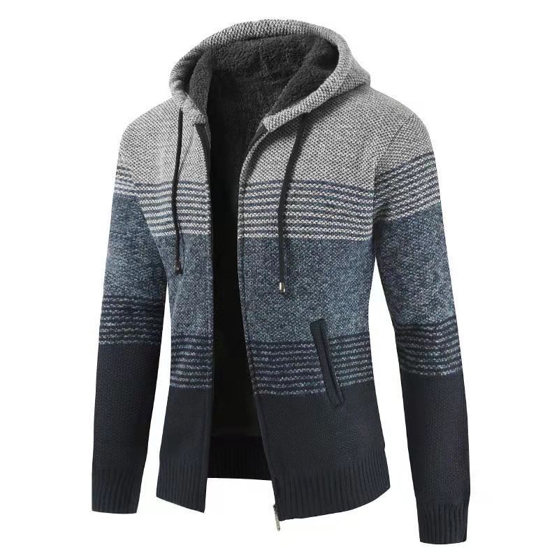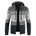 Knitted Casual Zip Up Stripe Pattern Hoodie