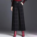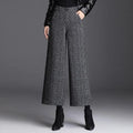 Nordic Wool High-Waist Wide-Leg Trousers | Check Ankle-Length Trousers