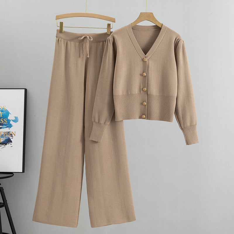 Amelia Knit Two-Piece Set | Relaxed Fit Button Cardigan & Wide-Leg Pants