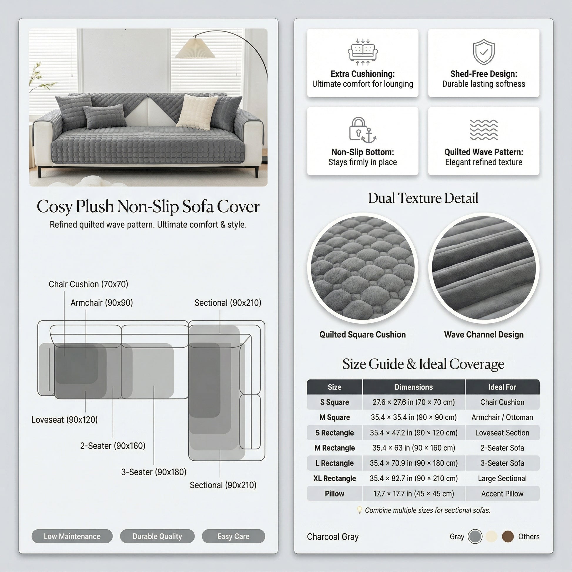 - Benefit from a secure non-slip bottom that keeps the slipcover firmly in place, preventing unwanted movement.