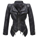 Make a statement with the Nordisk-Flair Women’s Biker Jacket – Slim Fit – Studded Shoulders – Asymmetrical Zip – Zippered Cuffs. This stylish jacket features a slim silhouette, bold studded shoulder detail, and an edgy asymmetrical zipper closure, creating a look that's both modern and timeless.