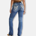 Contrast Stitching Mid-Rise Bootcut Jeans