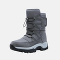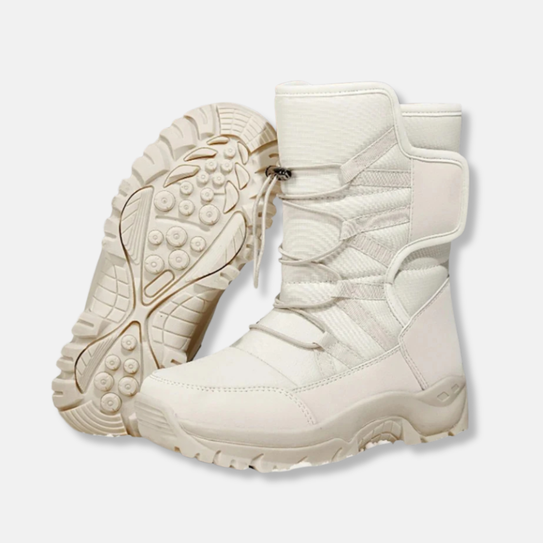 - Design: High-top, robust winter boot silhouette with a drawstring lace-up closure.