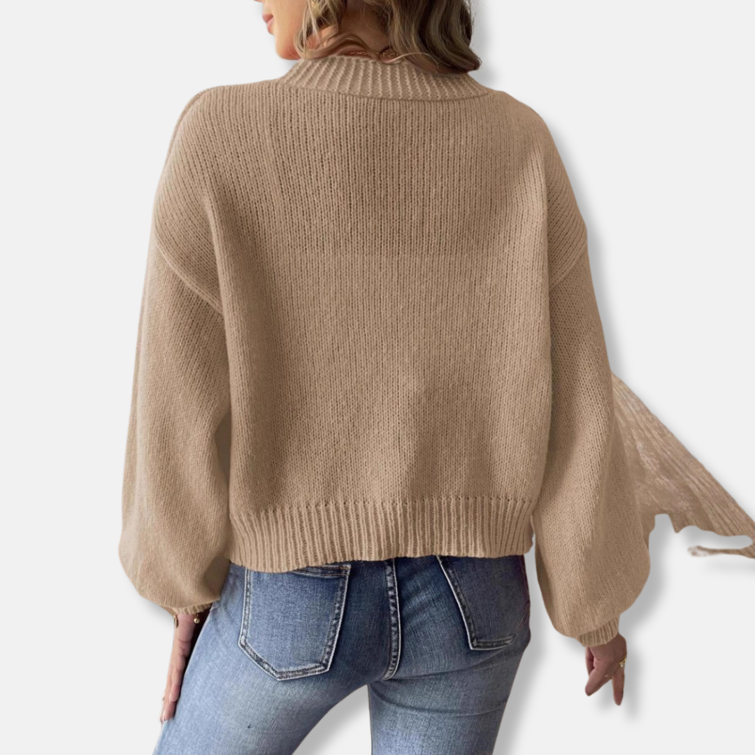 Embrace effortless elegance with our Women’s Cardigan, a luxurious Knit Blend piece designed for a Relaxed Fit. Its Cropped Length and distinctive Lantern Sleeves create a flattering, modern silhouette perfect for versatile styling.