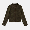 Elevate your everyday style with our Women’s Cardigan, a timeless knit piece. Its cropped length and collarless round neck offer a modern, flattering silhouette, while long sleeves ensure elegant comfort for any casual occasion.