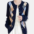 Elevate your smart casual wardrobe with our Women’s Cardigan Sweater. This elegant knit features a timeless argyle pattern and a classic crew neck, designed with a flattering straight silhouette and a refined button-front closure for versatile, sophisticated styling.