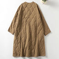 Embrace effortless elegance with our Women’s Quilted Longline Coat. Its oversized, relaxed fit and collarless V-neck create a flattering, modern silhouette, perfect for sophisticated layering and versatile styling.