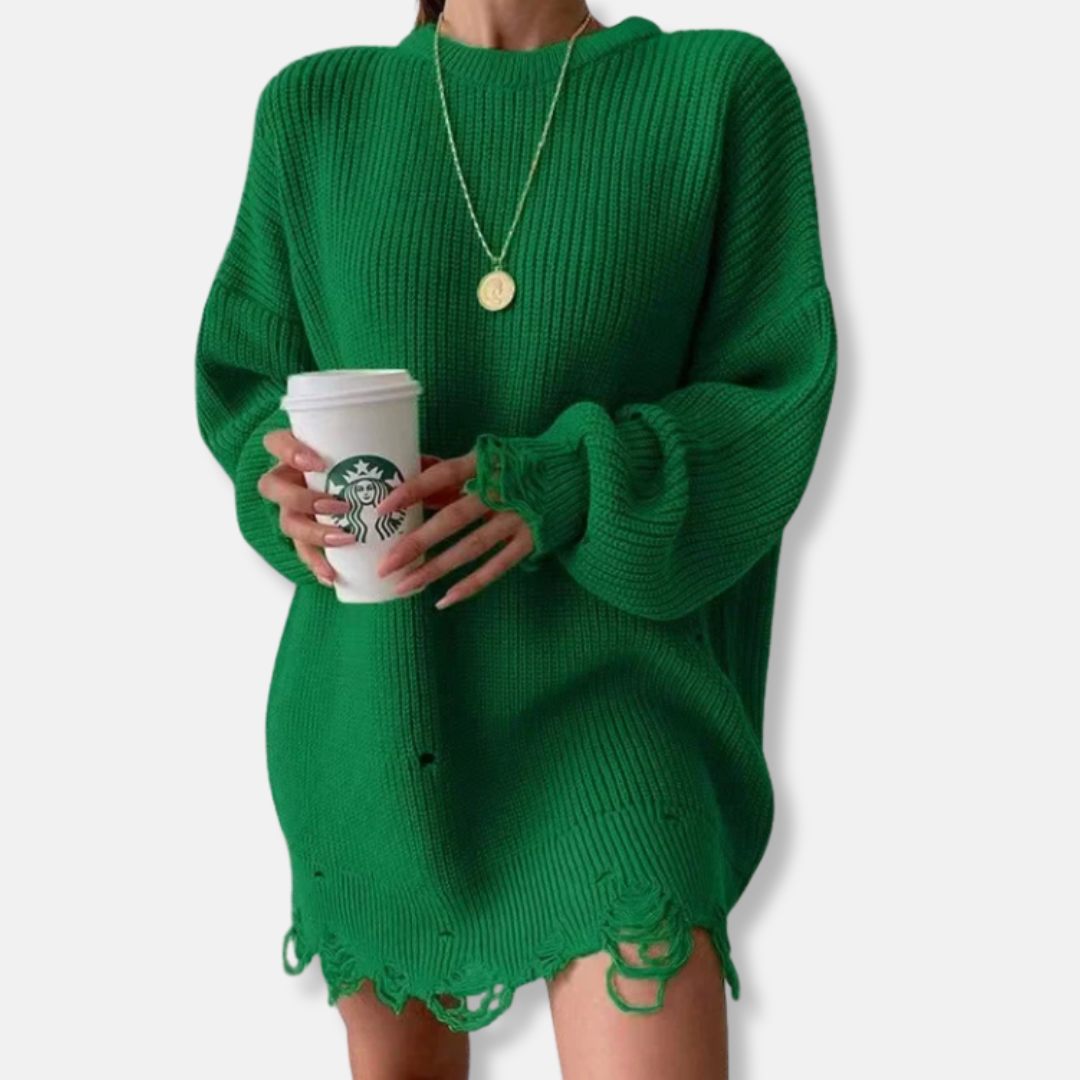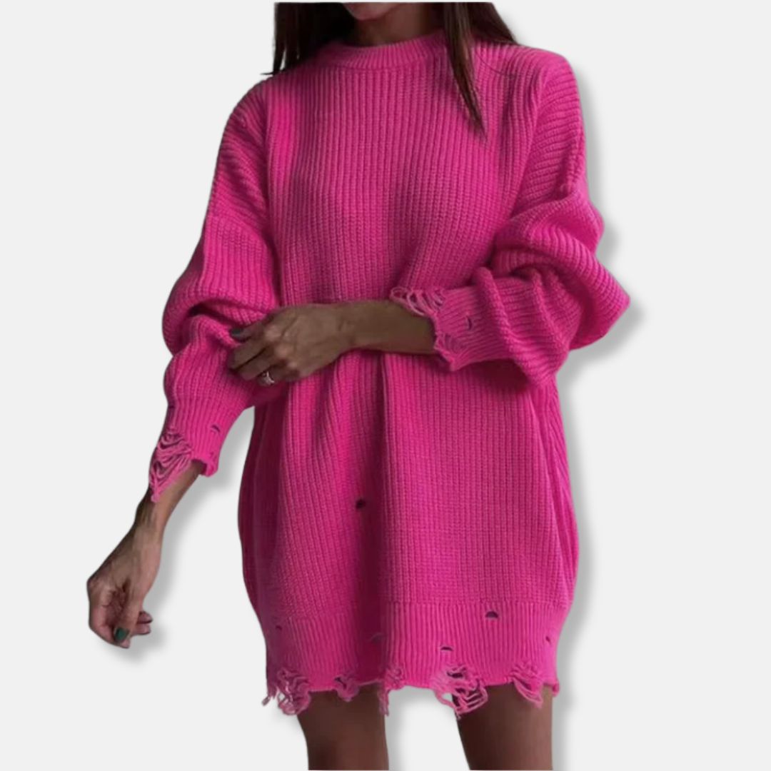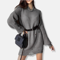 Embrace effortless elegance with this Women’s Ribbed Knit Mini Dress. Designed for the discerning woman, its relaxed, oversized fit flatters with a straight silhouette, while the chic balloon sleeves and artfully distressed hem add a touch of modern sophistication to your timeless wardrobe.