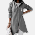 Elevate your everyday style with our Women’s Hooded Cardigan. This knit, long-length, full-zip cardigan features a flattering relaxed fit and a distinctive asymmetrical hem, offering both comfort and sophisticated versatility for the modern woman.