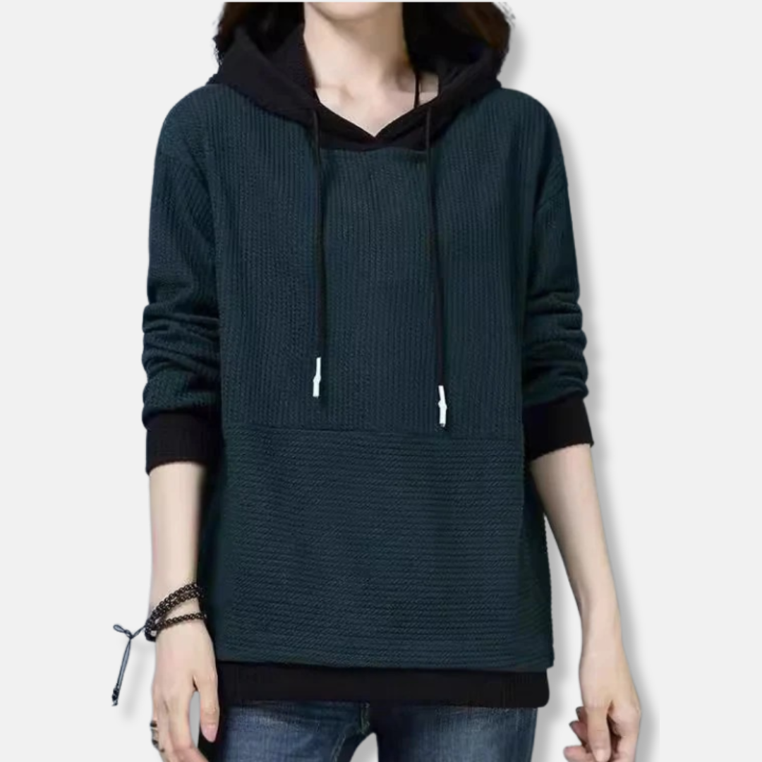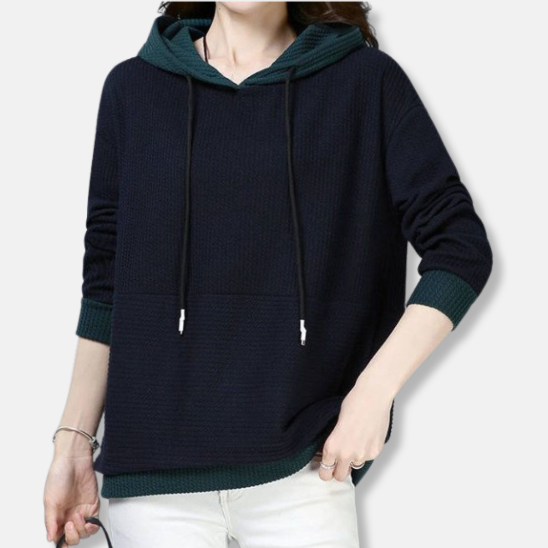 Embrace effortless elegance with our Women’s Hooded Sweatshirt. Crafted from a beautifully textured knit, its loose fit and tunic length offer a flattering, relaxed silhouette, perfect for sophisticated comfort. The adjustable hood adds a touch of versatile style to this timeless piece, ensuring a refined look for any casual occasion.
