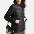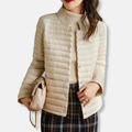 `Women’s Jacket – Slim Fit – Quilted Woven Blend – Stand Collar – Short Length` by Nordisk-Flair. Experience stylish warmth with this quilted, slim-fit jacket. The woven blend and stand collar create a chic, short-length silhouette.
