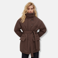- Design: Oversized, relaxed fit with a self-fabric tie-belt.
