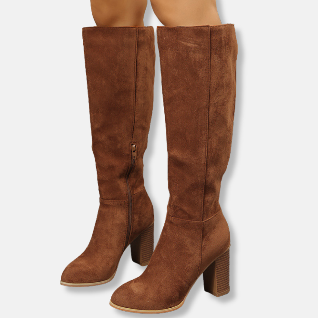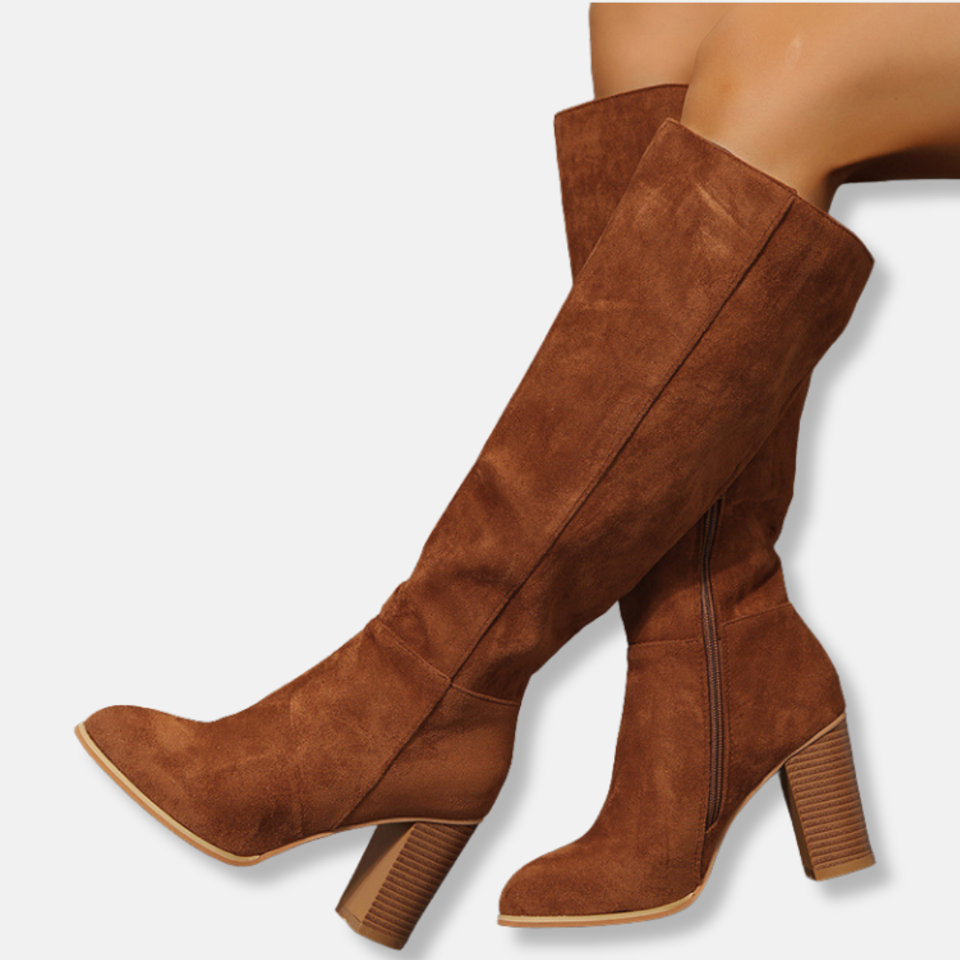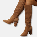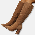 Faux Suede Almond Toe Block Heel Knee-High Boots