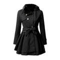 Wool Blend Faux Fur Flared Knee-Length Coat
