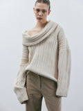 - Design: Oversized, ribbed knit with off-shoulder neckline