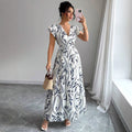 Embrace effortless elegance with the Women’s Long Dress – Slim Fit – V-Neck – Ruffle Shoulder – Waist Tie – Bold Print from Nordisk-Flair. This stunning long dress features a flattering slim fit, a feminine V-neck, delicate ruffle shoulder details, and a waist tie to accentuate your figure. The bold print makes this dress a true statement piece.