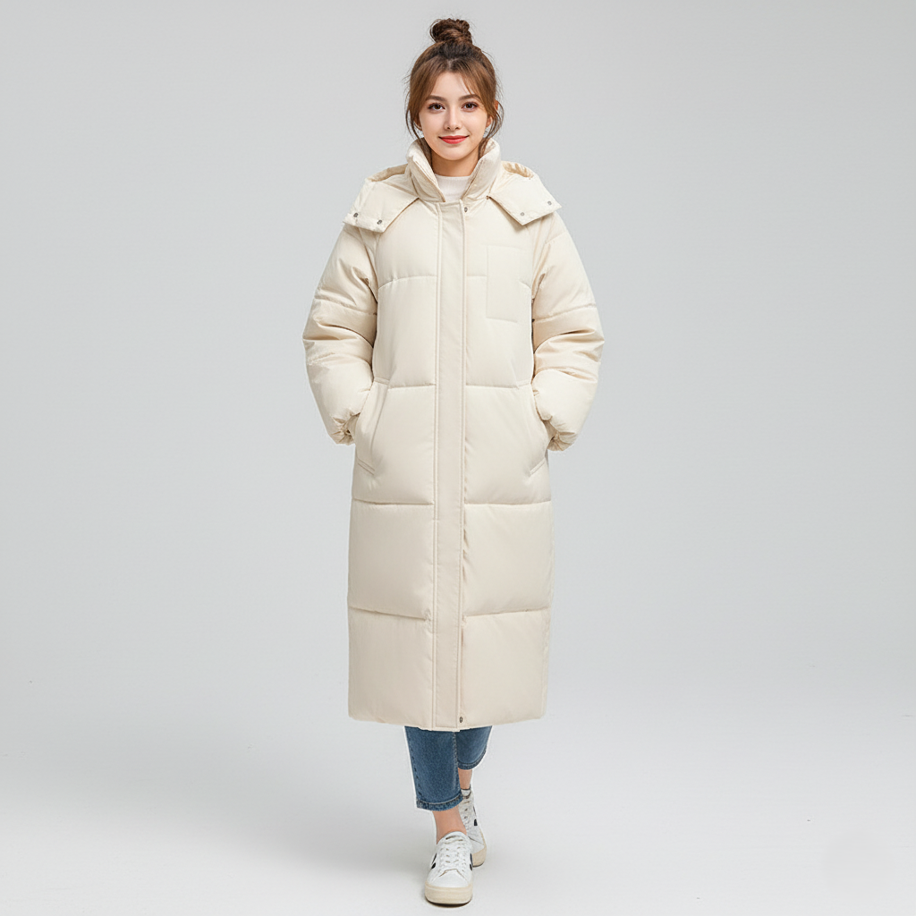 Stay cozy and stylish with our Women’s Long Puffer Trench Coat – Oversized Fit – Quilted Insulated – Hooded High Collar from Nordisk-Flair. This essential outerwear piece offers ultimate warmth and a flattering silhouette, perfect for chilly days.