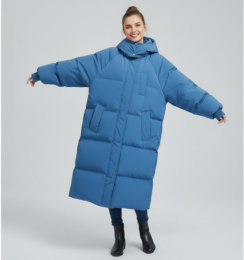 Stay cozy and stylish with our Women’s Long Puffer Trench Coat – Oversized Fit – Quilted Insulated – Hooded High Collar from Nordisk-Flair. This essential outerwear piece offers ultimate warmth and a flattering silhouette, perfect for chilly days.