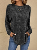 Ribbed Knit Relaxed Fit Long Sleeve Top