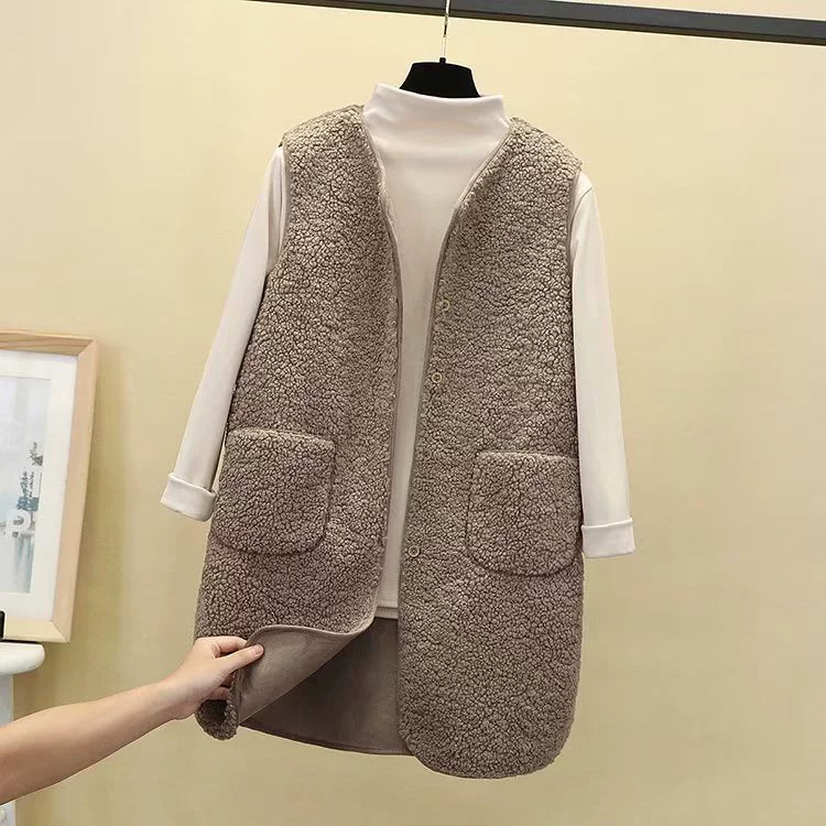 Drape this plush vest over a long-sleeved top and jeans for a chic, effortless look. Add a scarf for extra warmth on colder days.
