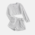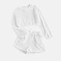 Stay cozy and stylish with the Women’s Two-Piece Loungewear Set – Textured Plush – Cropped Long Sleeve Top – High-Waisted Shorts by Nordisk-Flair. This plush set features a cropped long sleeve top and flattering high-waisted shorts, perfect for relaxing at home or a casual day out.