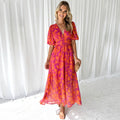A-Line V-Neck Voluminous Sleeve Maxi Dress