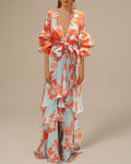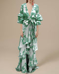 Printed Chiffon Belted Ruffle Maxi Dress