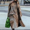 Embrace bold style and cozy warmth with the Nordisk-Flair Women’s Overcoat – Wool Blend – Oversized Fit – Full Length – Abstract Pattern – Button Front. This statement piece offers an effortlessly chic look with its eye-catching abstract design and comfortable, oversized silhouette. Perfect for staying stylish and warm all season long.