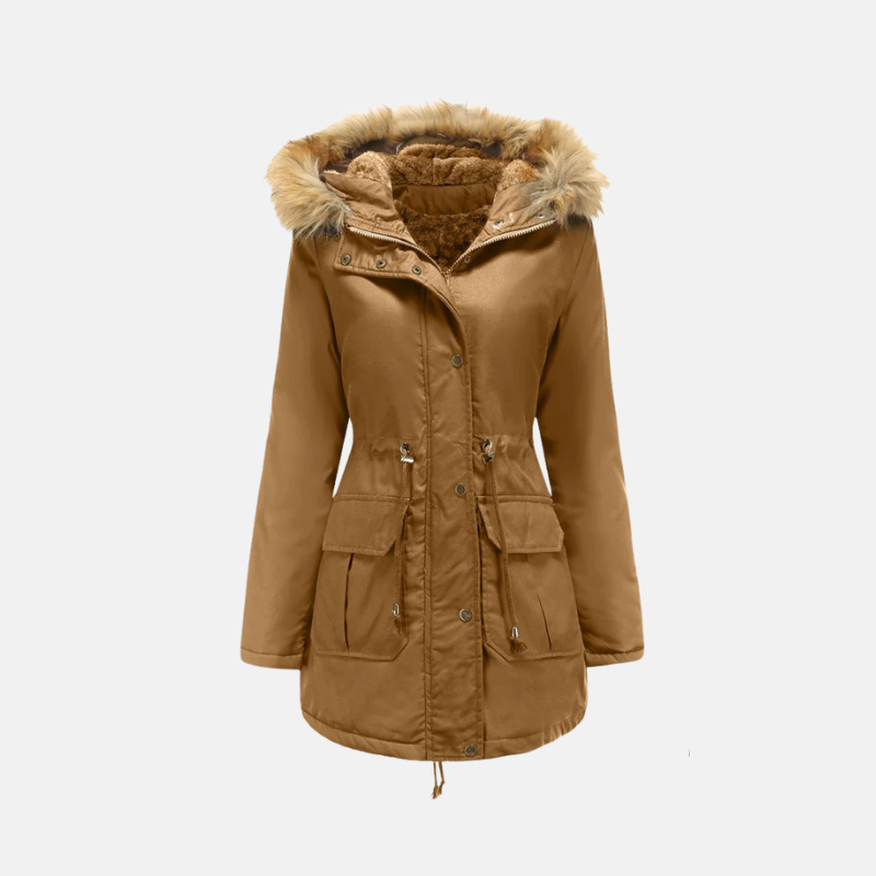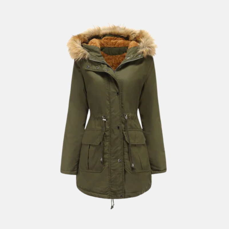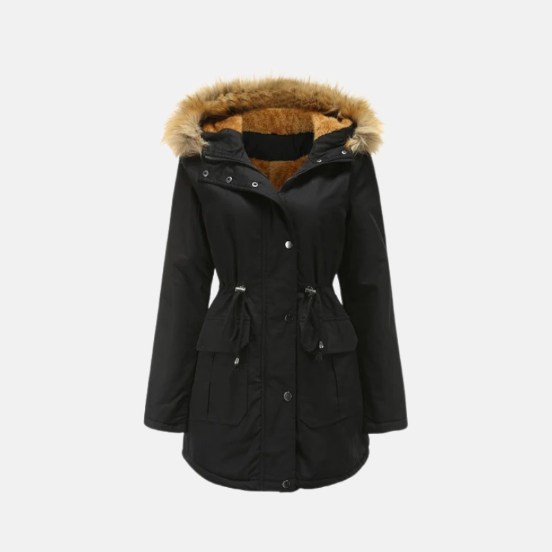 Stay warm and stylish with the Nordisk-Flair Women’s Parka Jacket – Fleece Lined – Faux Fur Hood – Adjustable Waist – Mid-Thigh Length. This essential winter coat features a cozy fleece lining, a detachable faux fur hood, and an adjustable waist for a flattering fit.